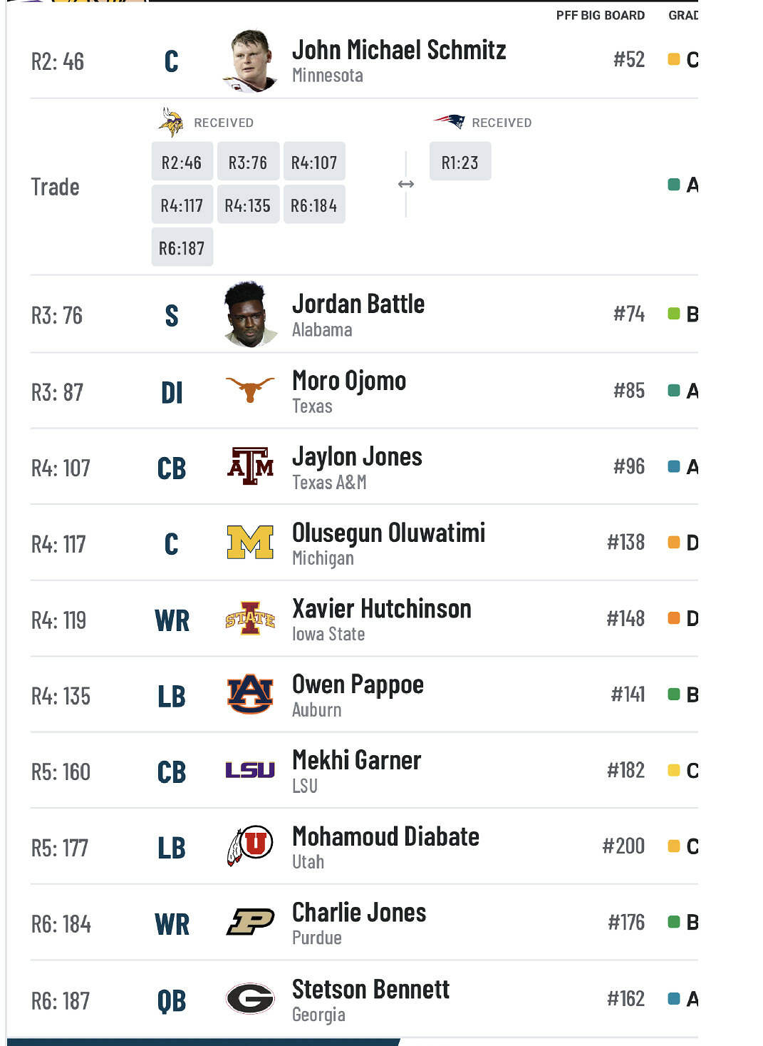 Vorhees is probably the top IOL in the draft and Mingo is a fantastic WR who’s going to drop.