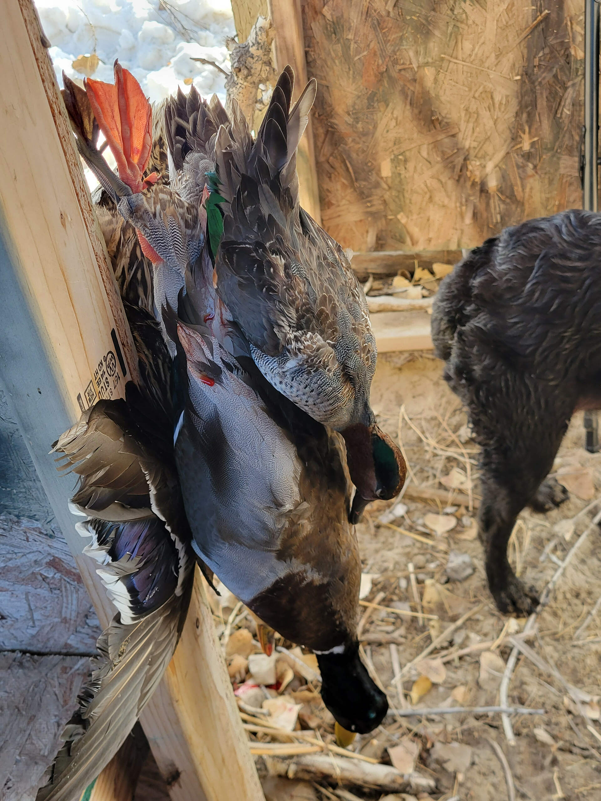 Mallards, green wing teal from yesterday. Honkers and a snow too