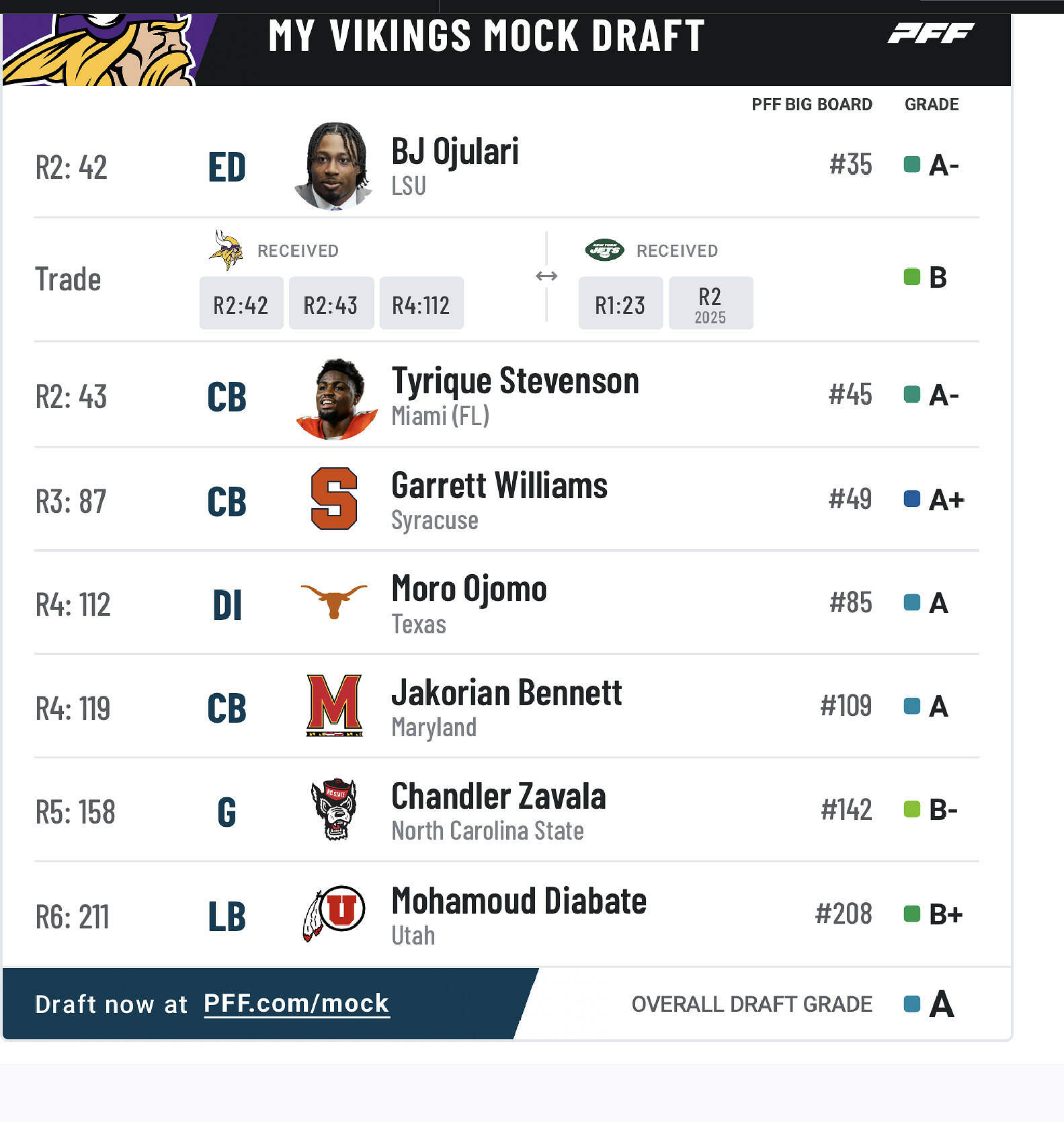 Lol…PFF has now instituted a daily mock limit (not sure what it is must be 1 or 2) after that it locks and you have to subscribe to have unlimited. Fuck those guys.