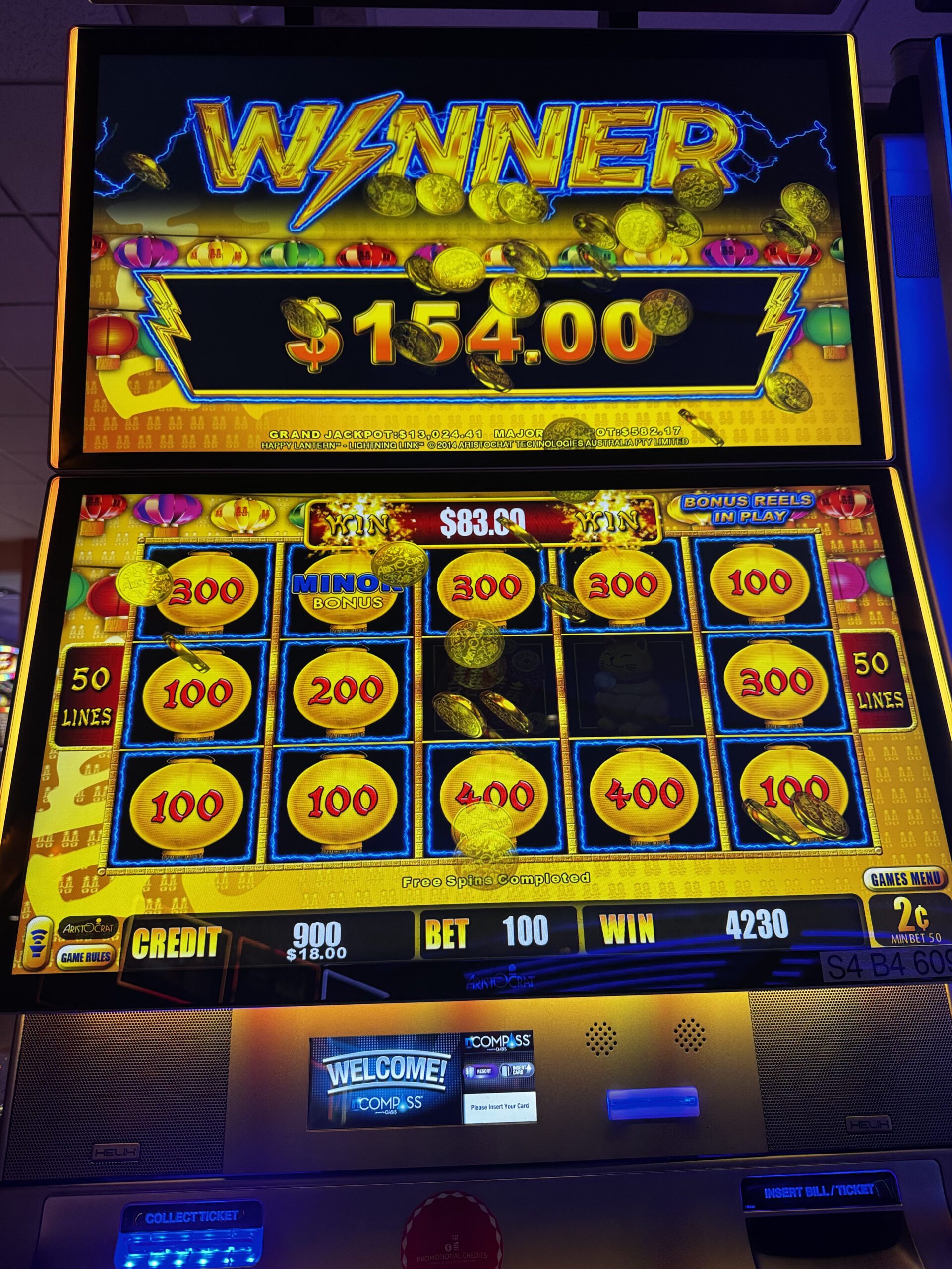 I stopped at 4 Bears on Wednesday on my way home from Williston. Put $50 in, hit $160, hit another $60, cashed out when I was at $200. Probably there for 20 minutes.