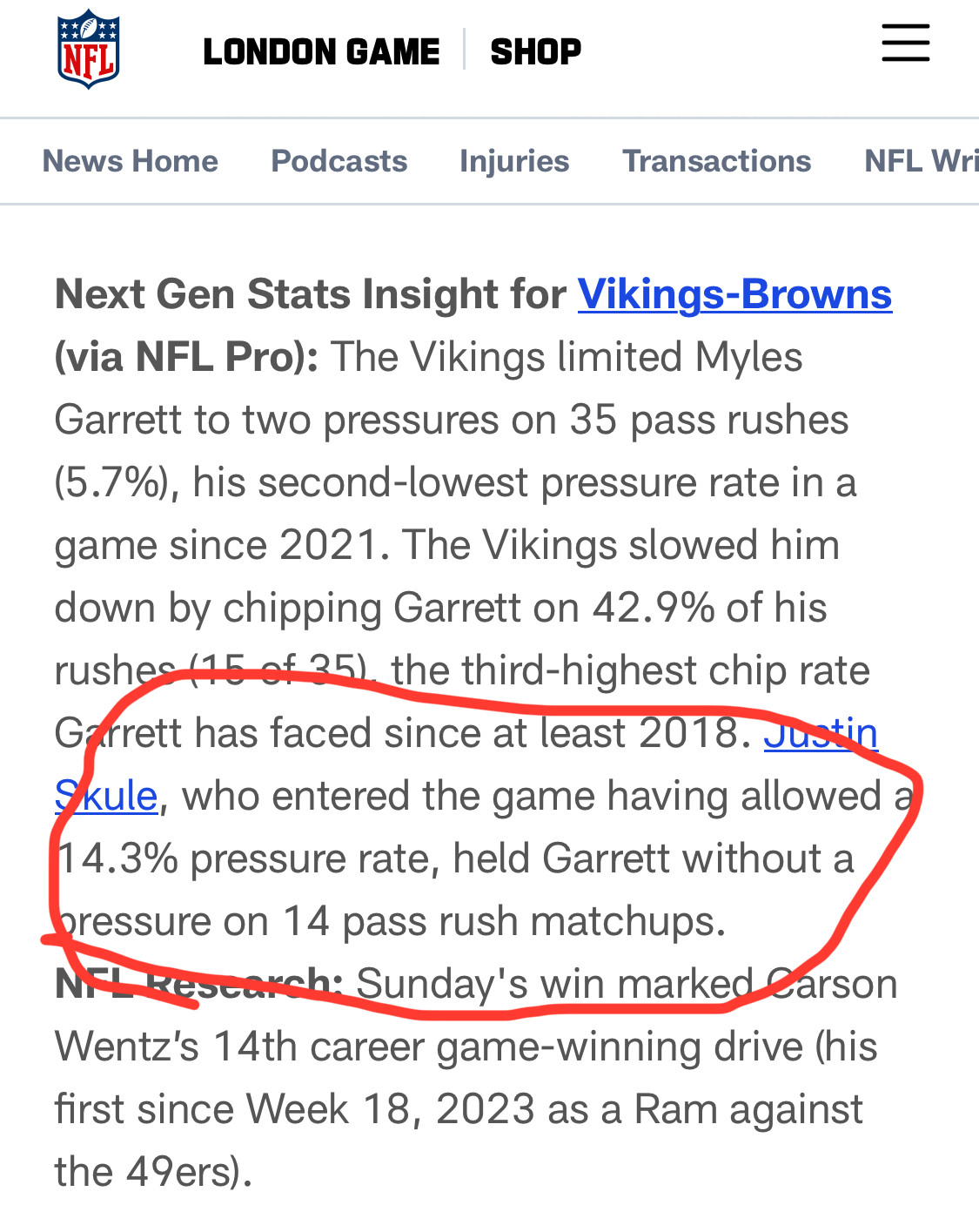 That itself is pretty inexcusable though – how do you essentially not even touch someone? That should pretty much never happen, and it happens to the Vikings 4 times a game.