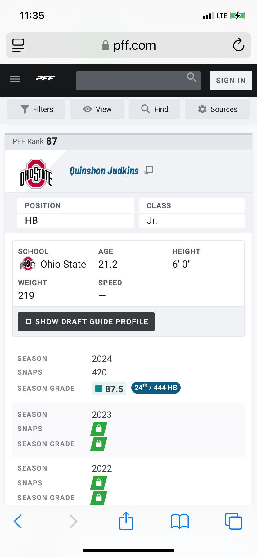 But I used PFF big board and it had Skatteboo #48 and