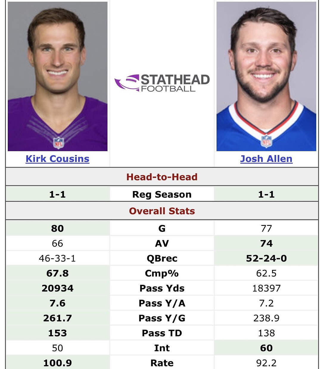 Well….well….well. Let’s hear from the Kirk-O-Haters about how they wish we had a QB, a winner, like Josh Allen. (*Since 2018)