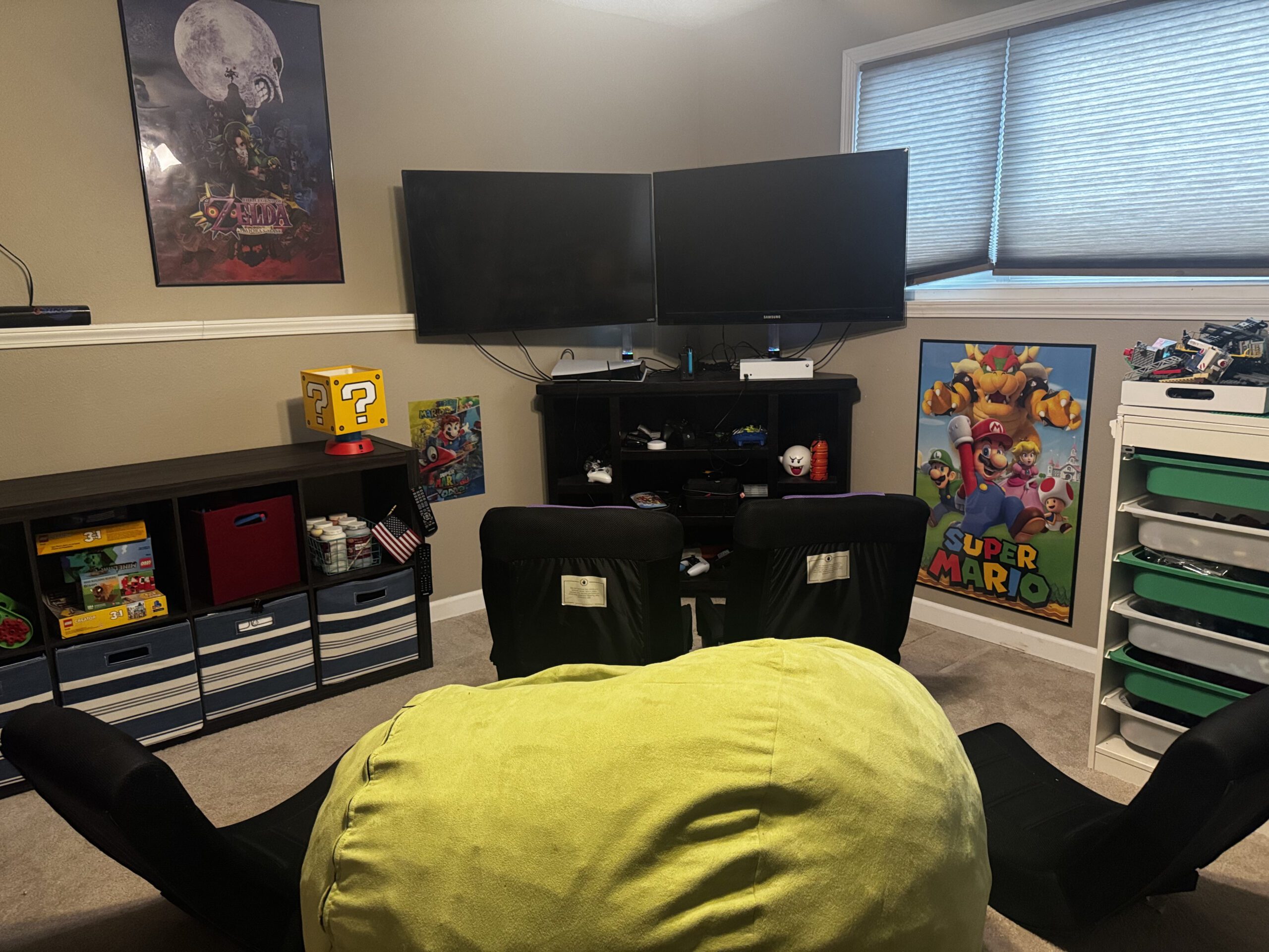 Kiddo and I are spending the day off building a gaming area, progress so far.