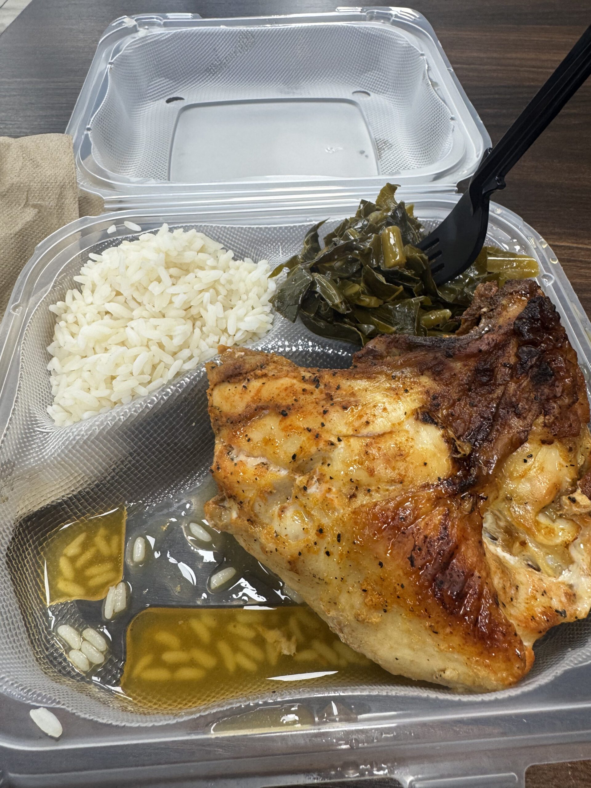 I landed in Charlotte last night, and it is beautiful here. It was 30 and snowing when I left Bismarck, and it was 75 degrees here when I landed. One of my goals while I’m here was to grab some soul food. Well, I accomplished that goal within a half hour of landing. I sat down to eat at the hotel when I landed, and lo and behold, on the menu was pan seared trout with collard greens. Friggin yummy, I really miss the south.