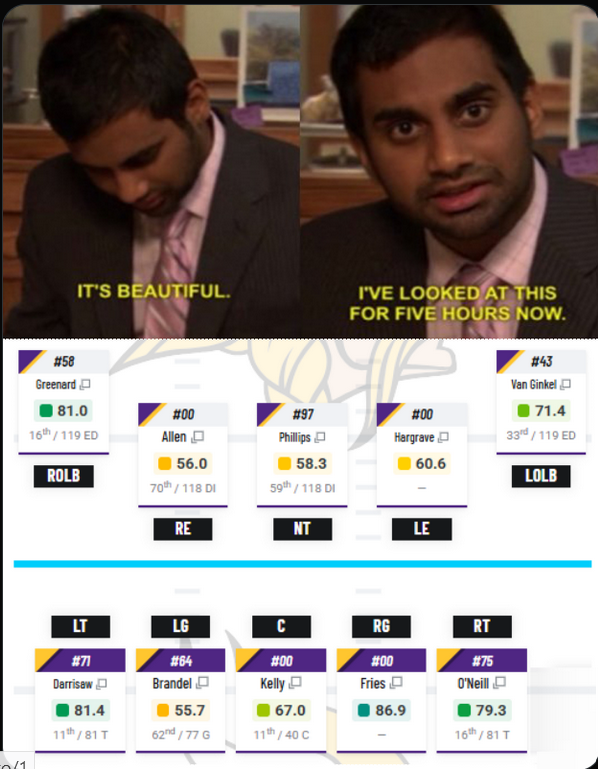 I think that is likely as well – and I’m fine with it. He was solid, didn’t see him as the weak link in the line. They’re older, but Kelly & Fries are both immediate upgrades imo