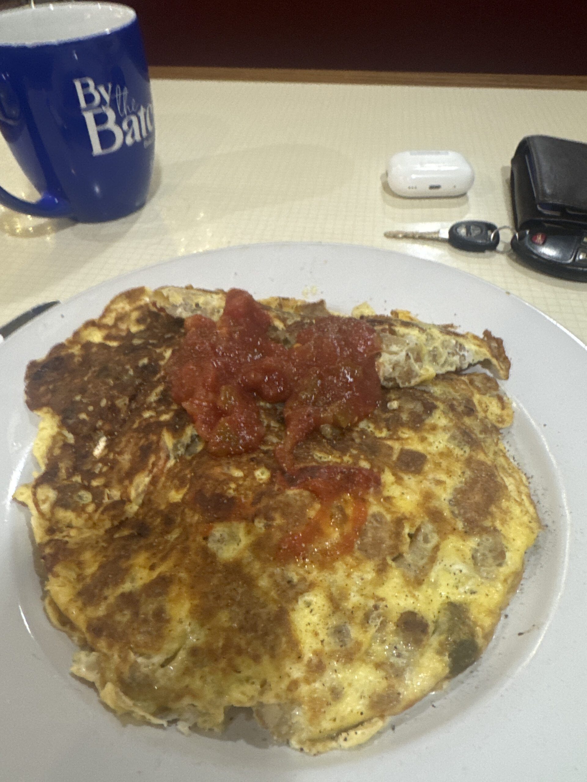Nope, breakfast scrambler. Eggs, taters, sausage, veggies, & salsa.