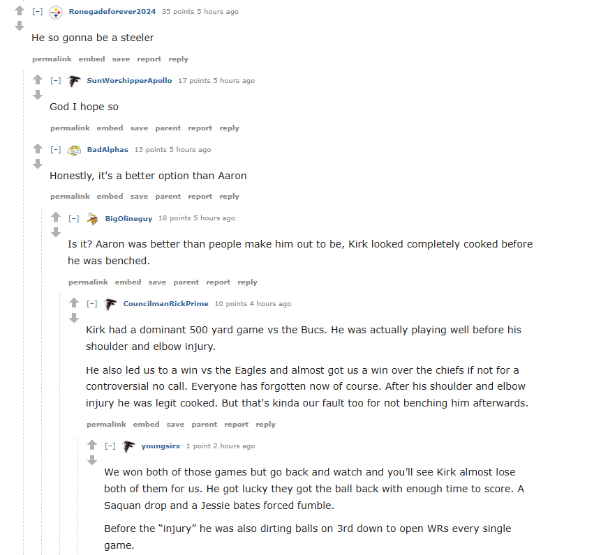 Kirk to Steelers is too perfect of a match to not happen. Tomlin can coach another 20 years with a QB like Kirk. That combo will always be “right there” to infinity.