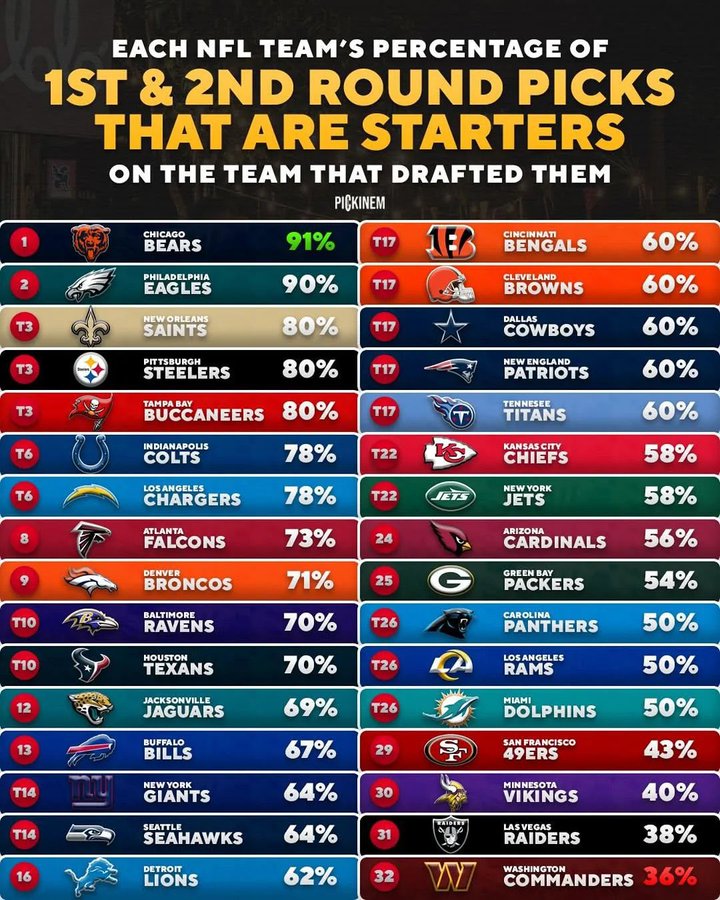I honestly can’t figure out how the percentage of first and second round draft picks that are starters, makes you a better team.