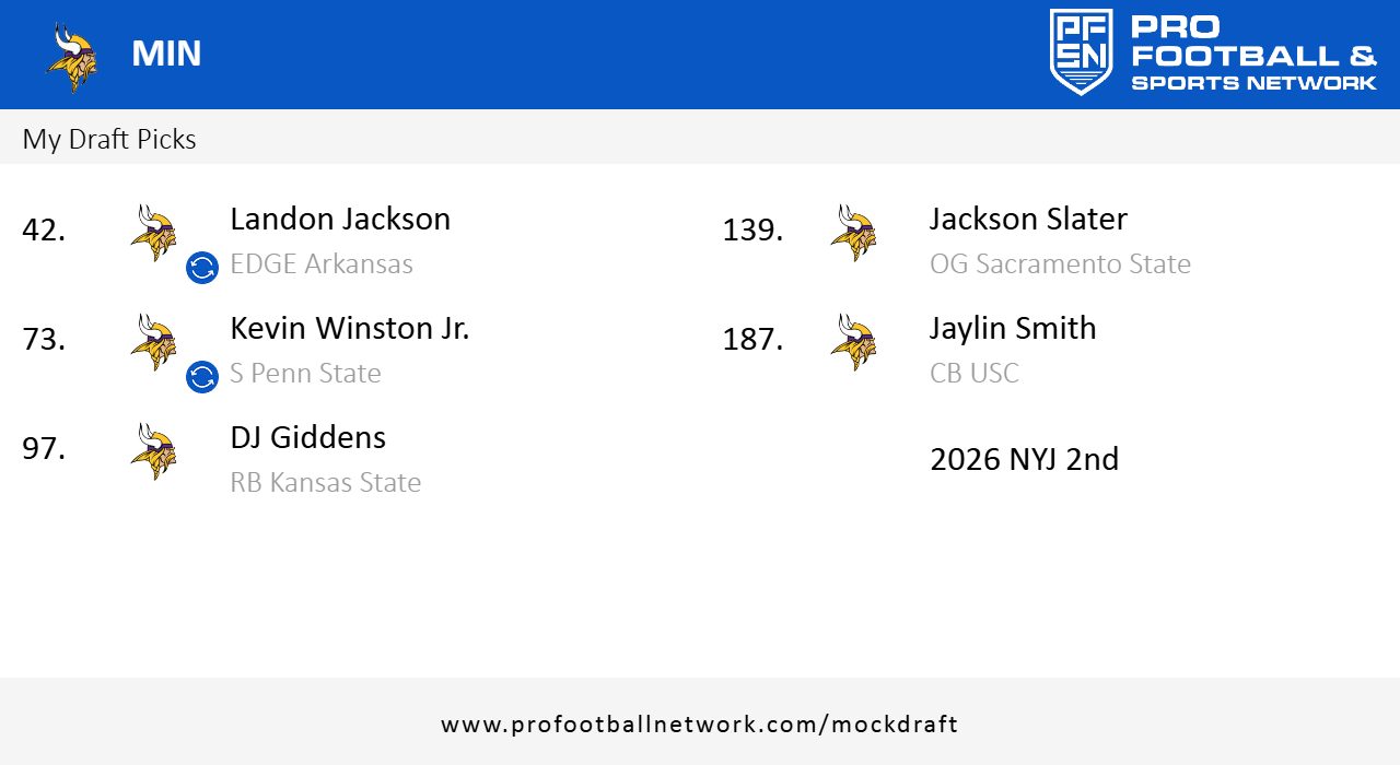 Vikings.com posted v6.0 of their Vikings 2025 Mock Draft Tracker.
