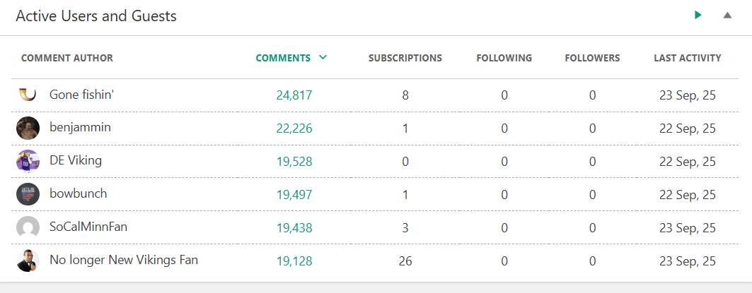 Happy Tuesday, everyone, and welcome to Skoloholics, your home for Minnesota Vikings Discussion! Every day you can join us for the latest Minnesota Vikings news, lots of Minnesota Vikings talk, also NFL news and updates, and most anything else you may have on your mind. At Skoloholics, the real action is in the comments, so if you haven’t checked out the comments section yet, sign up and join the conversation.