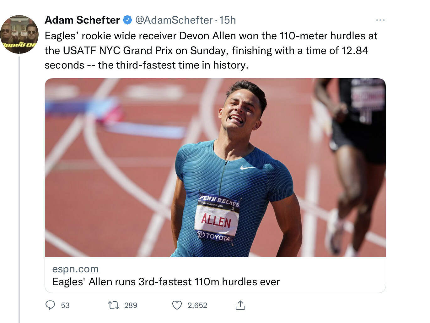 Well…he’s a udfa so we’ll see if he can make their 53. He certainly can out run PP no doubt about it.