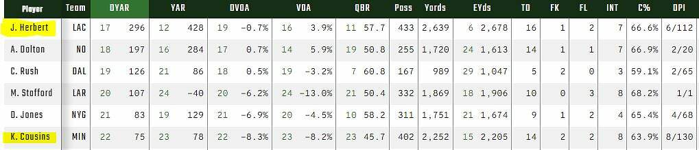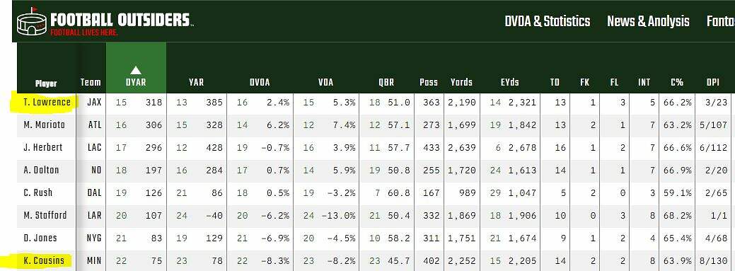 Vikings fell all the way from #17 to #24 in DVOA this week.