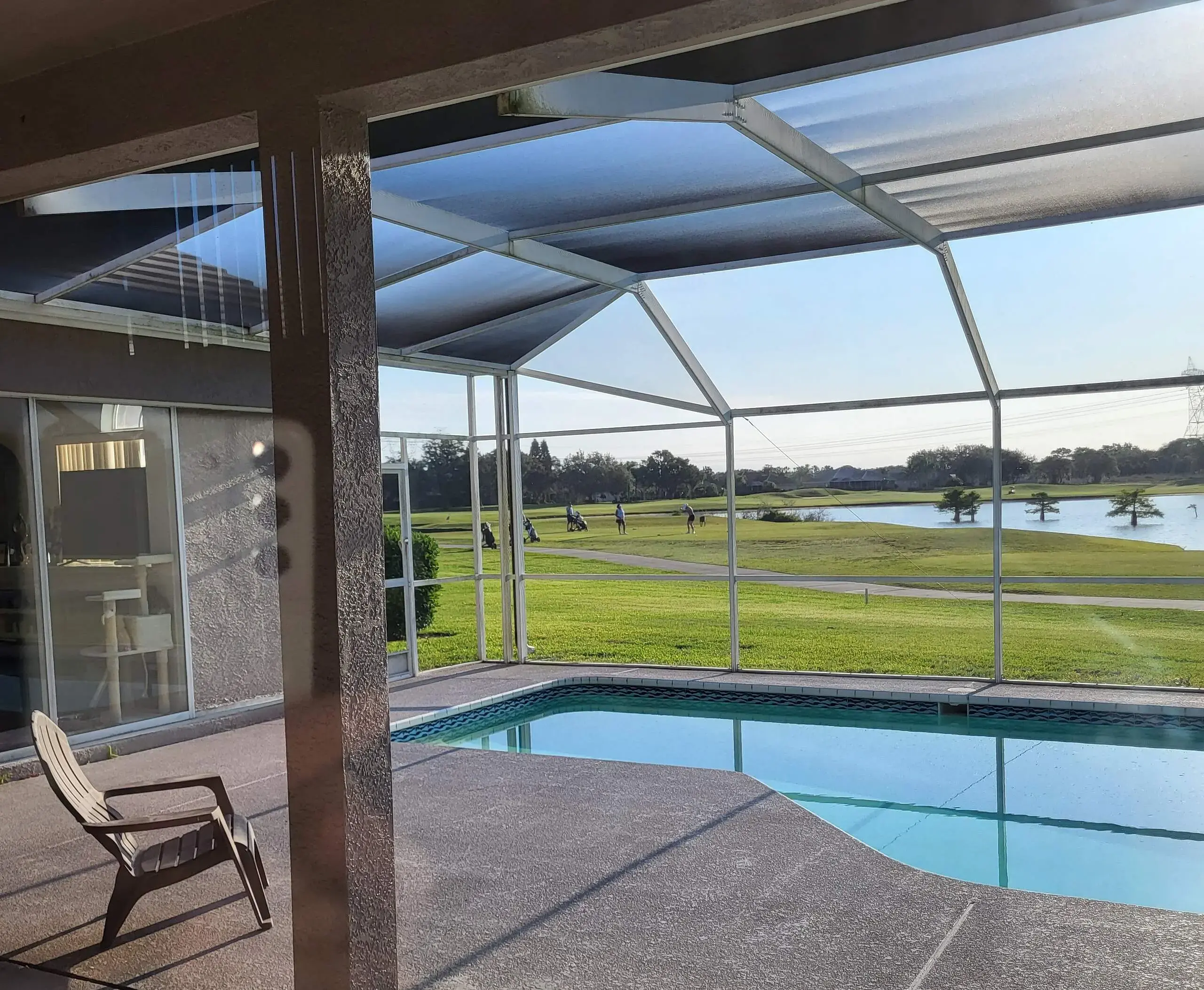 We get our fair share of balls that hit the Lanai, and land on the roof. We’ve even found balls in our front yard. In the morning, it’s fun to sit there with a cup of coffee and watch the balls splash into the lake. Lots of cursing happens on that tee box. I have even seen one guy throw his club into the lake (and I mean WAY into the lake) then realize what he did. Hilarious.